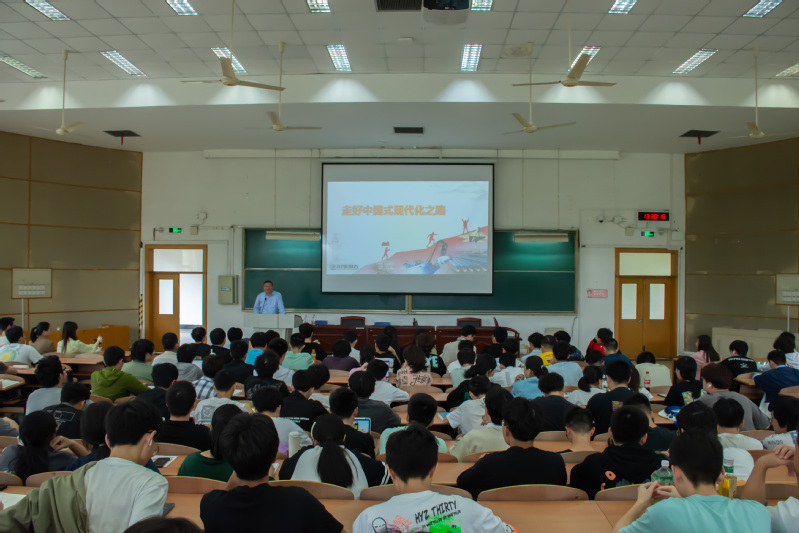 首先,李文钧副校长向同学们引入,“100多年的非凡奋斗历程证明,中国式现代化这条道路,不仅走得对、走得通,而且也一定能够走得稳、走得好”,接着分别从“接续奋斗,追求千年梦想”“立足国情,开辟全新道路”“凝心聚力,推进复兴伟业”三个方面进行展开,向同学们详细阐述了中国共产党的成立以及党是如何团结带领全国各族人民战胜各种风险挑战,建立起比较完整的工业体系和国民经济体系,一步步让人民生活从温饱到小康再到富裕,为中国的现代化奠定了根本政治前提和制度基础。