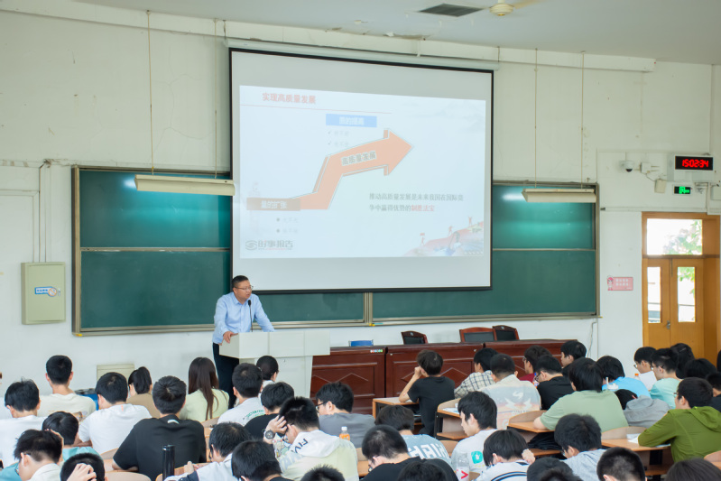 课上,李文钧副校长向同学们生动讲述了中国是如何探索和实现自己的现代化。中国式现代化,是人口规模巨大的现代化、是全体人民共同富裕的现代化、是物质文明和精神文明相协调的现代化、是人与自然和谐共生以及走和平发展道路的现代化。开创了不同于西方资本主义现代化的全新路径,为人类对更好社会制度的探索提供了中国方案、贡献了中国智慧。
