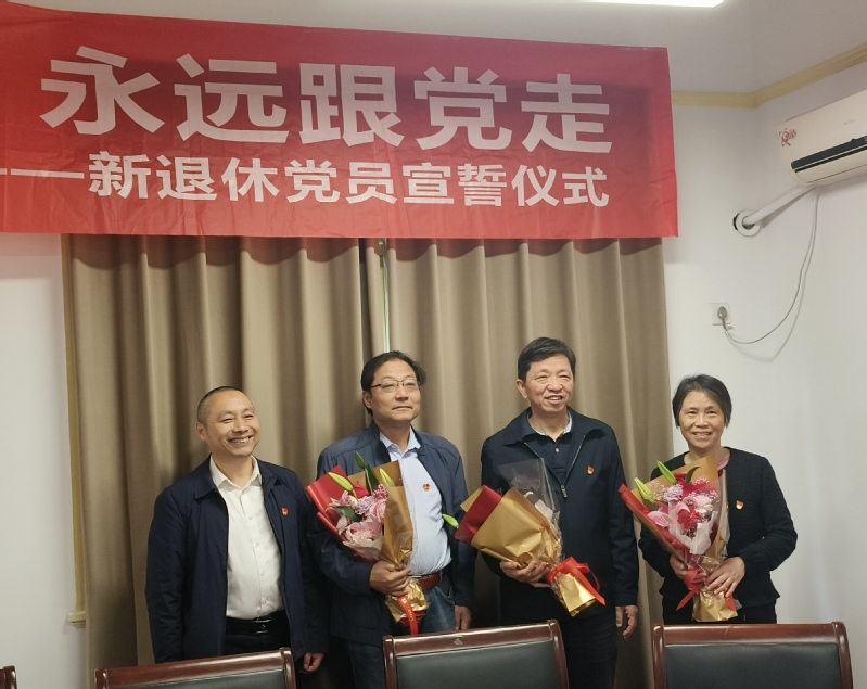 会议还举行了2023年新退休党员宣誓仪式。王文虎代表离退休党委欢迎新退休党员,给薛晓飞、余日泰、姜勇、张定华等同志戴党徽,送鲜花。与会全体党员面对宣誓墙,在王文虎的领誓下重温入党誓词。通过新退休党员宣誓等活动,重温党的光辉岁月,牢记初心使命,永葆党的生机活力,引导大家离岗不离党,退休不褪色,听党话感党恩,永远跟党走,继续为党和人民的事业增添正能量。