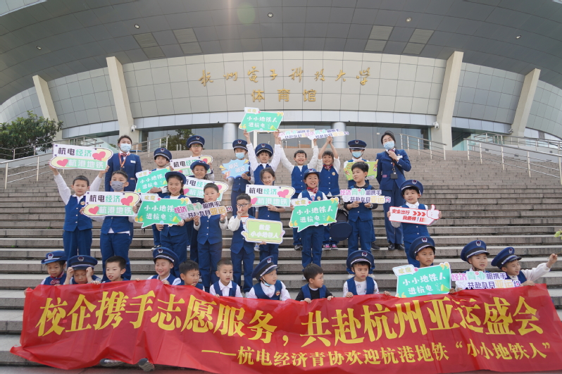 秉承杭州亚运会“绿色、智能、节俭、文明”的办赛理念,4月22日,杭州电子科技大学经济学院与杭港地铁进行校企志愿服务合作,邀请了杭州市29位小学生变身“小小地铁人”搭乘地铁1号线参观杭电亚运会击剑馆。