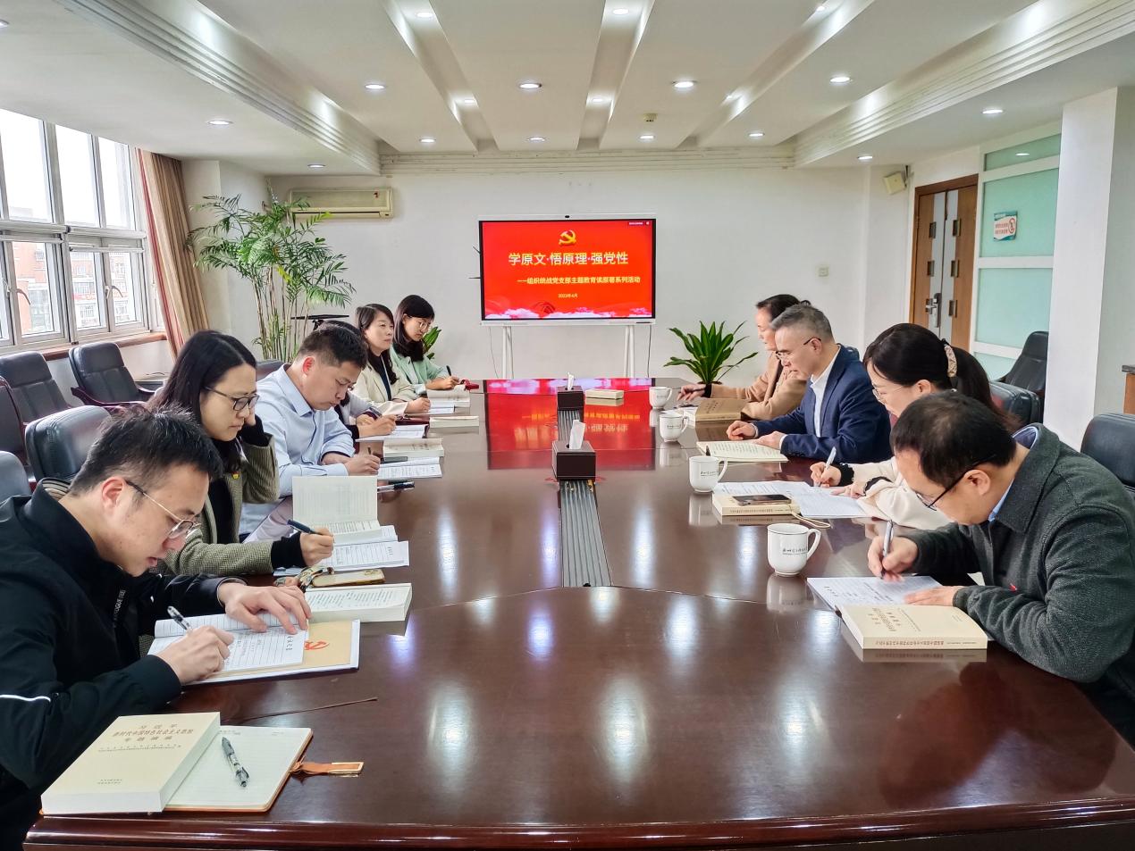 4月25日中午,机关党委组织统战党支部在行政楼六楼会议室召开集中学习会,启动“学原文·悟原理·强党性”——学习贯彻习近平新时代中国特色社会主义思想主题教育读原著系列活动,校党委书记王兴杰以普通党员身份参加学习会。