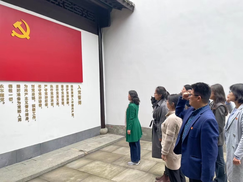 参观结束后,支部全体党员在学院党委书记沈莉带领下重温了入党誓词。