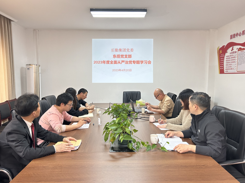 4月20日下午,后勤集团党委东岳党支部在礼贤楼206会议室组织召开了2023年度全面从严治党专题学习会。会议由支部书记王骅主持,全体党员和入党积极分子参加了此次会议。