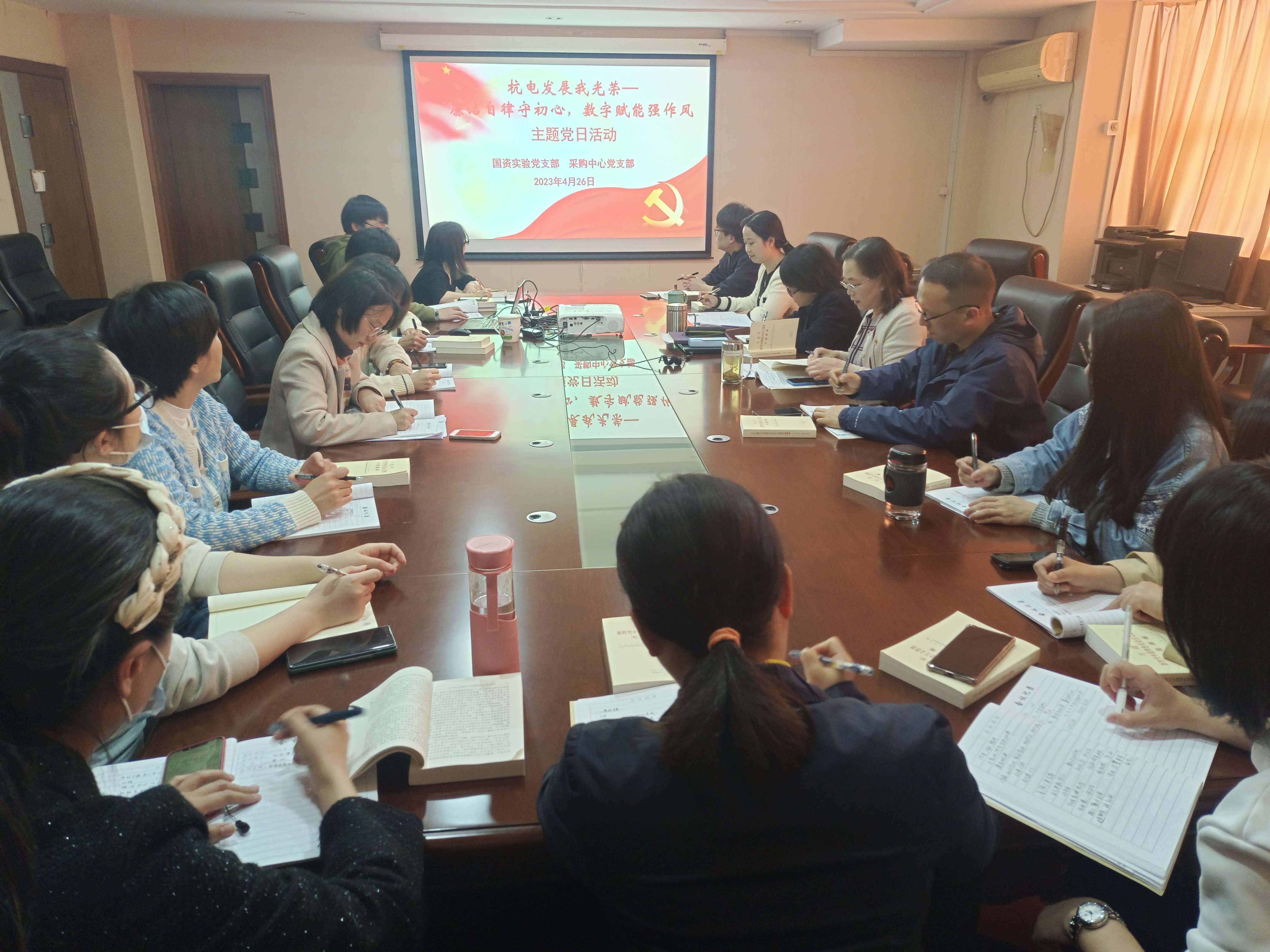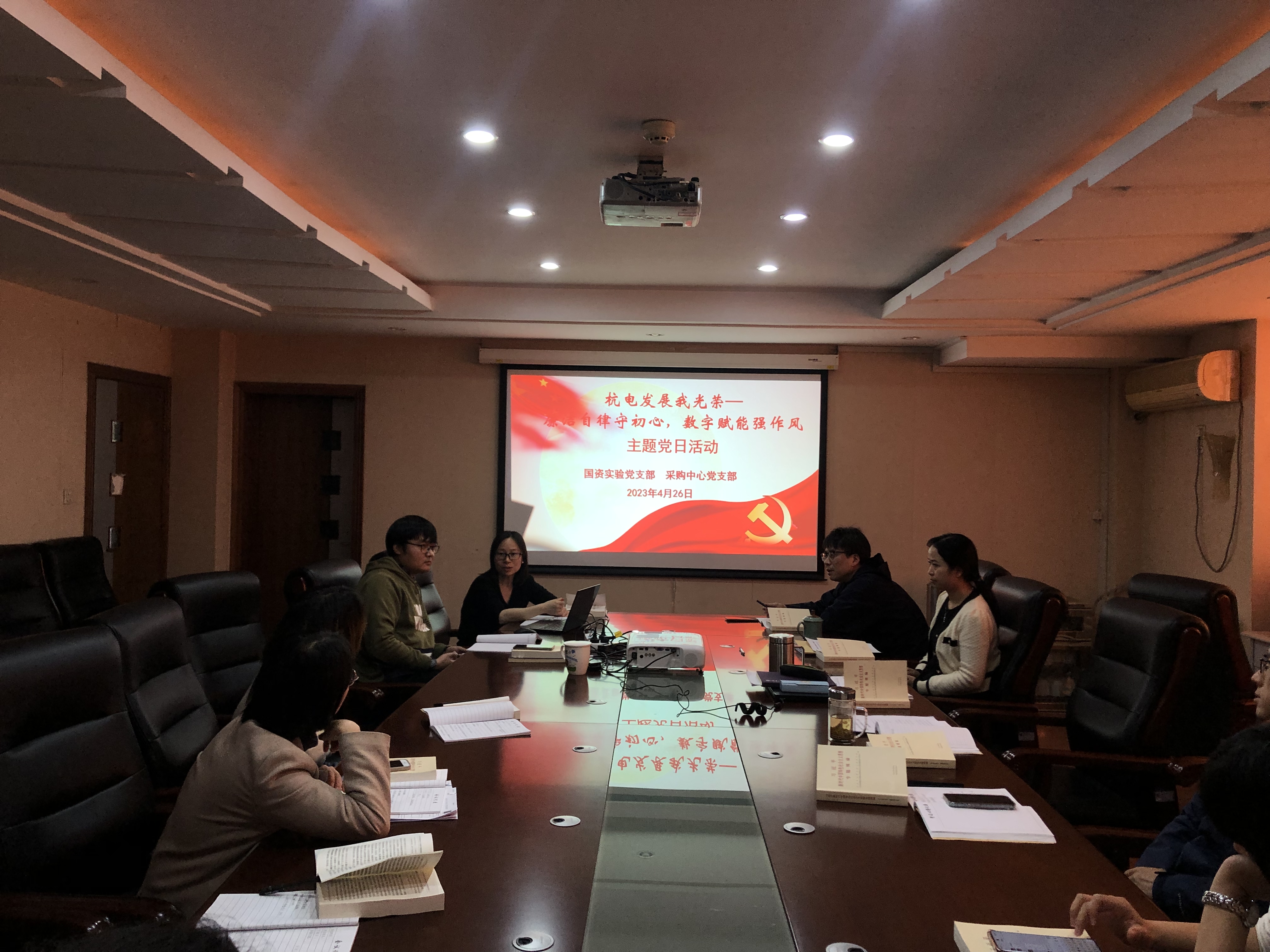 4月26日,国资实验党支部与采购中心党支部联合开展“杭电发展我光荣——廉洁自律守初心,数字赋能强作风”主题党日活动,学习贯彻主题教育精神,推动业务工作高质量发展。活动由国资实验党支部书记樊冰主持。