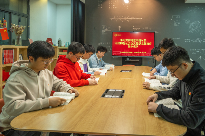 4月25日晚,卓越学院2019级学生第一党支部、学生第二党支部学生党员在十教121通过支部联学共促,开启集中“夜学”“夜谈”模式,扎实推进主题教育理论学习工作。在集中夜学现场,学生党员坚持一篇一篇读、逐句逐段悟,重点学习党的二十大报告、党章和《习近平新时代中国特色社会主义思想专题摘编》,大家结合自身实际,畅谈学习体会,分享学习感悟。