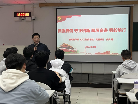 为深入开展学习贯彻习近平新时代中国特色社会主义思想主题教育,4月25日,在3教205教室,自动化学院(人工智能学院)党委书记姜周曙以“自强自信 守正创新 踔厉奋发 勇毅前行”为主题,为杭电2023年上半年党员发展对象培训班四班的同学们上了一堂主题教育生动党课。