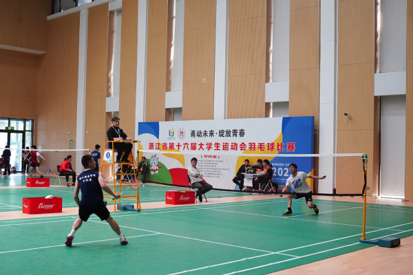 4月25日至28日,由浙江省教育厅、浙江省体育局主办,我校承办的浙江省第十六届大学生运动会羽毛球(甲丙组)比赛在我校下沙校区体育馆举行。
