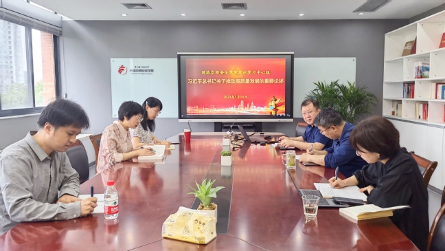 5月18日上午,网络空间安全学院党委理论学习中心组举行集中学习会议,专题学习习近平总书记关于推动高质量发展的重要论述。会议由学院党委书记罗美华主持,学院党委理论学习中心组全体成员参加学习。