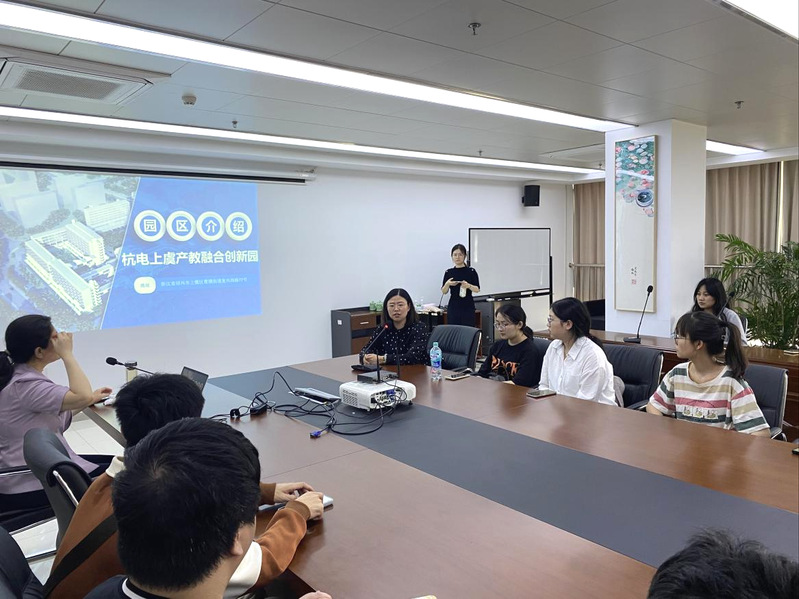 在参观杭电上虞科学与工程研究院时,上虞产教融合创新园院长、现代产业学院副院长李黎表示,学院致力于构建政行企校多方合作共赢的新模式与新机制,打造公共实习基地,建设以人才为核心的软实力平台,以学带产,吸引相关企业入驻,服务和推动地方经济社会发展。李黎鼓励同学们积极投身地方,服务地方经济发展。