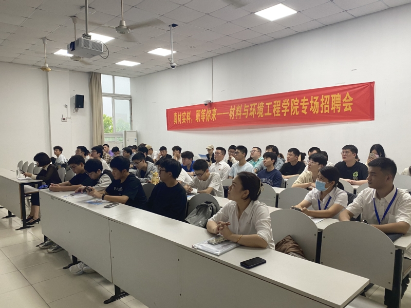 为深入学习贯彻习近平新时代中国特色社会主义思想主题教育精神,深入开展“访企拓岗促就业”行动,提升毕业生就业服务工作质量,给用人单位和毕业生提供更好的服务,材环学院于5月17日举办“真材实料,‘职’等你来”2023届毕业生材料与环境工程学院材料专场招聘会。毕业班辅导员、学院毕业班学生和低年级学生代表等参加了此次招聘会。此次招聘会学院共邀请杭州永磁集团有限公司、通友智能装备有限公司、浙江明贺钢管有限公司三家企业进行宣讲。