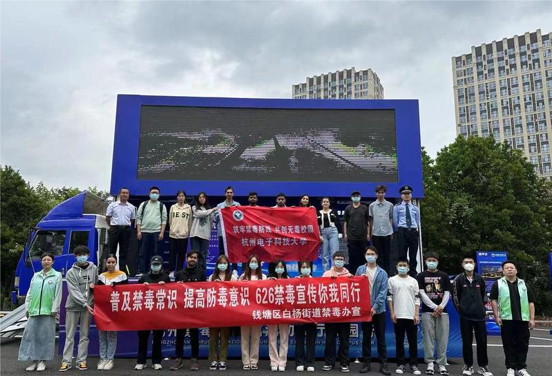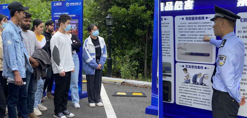 5月24日下午,为进一步提升禁毒宣传教育实效,我校保卫处、国际教育学院党员教师带领留学生、学生义警队等学生代表一行参加钱塘区禁毒办、白杨街道禁毒办举办的“禁毒宣传进高校,守护青春不毒行”的禁毒宣传活动。
