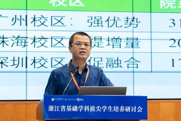 此外,浙江大学化学系主任姚加、杭州电子科技大学副校长李文钧、浙江工商大学副校长赵英军、浙江工业大学教务处副处长汤智、浙江师范大学初阳学院副院长宋清秀、温州医科大学药学系主任赵应征做了交流报告,分别围绕化学、计算机科学、经济学、物理学、数学、药学等学科介绍了省属高校在基础学科拔尖学生培养方面开展的探索与实践。