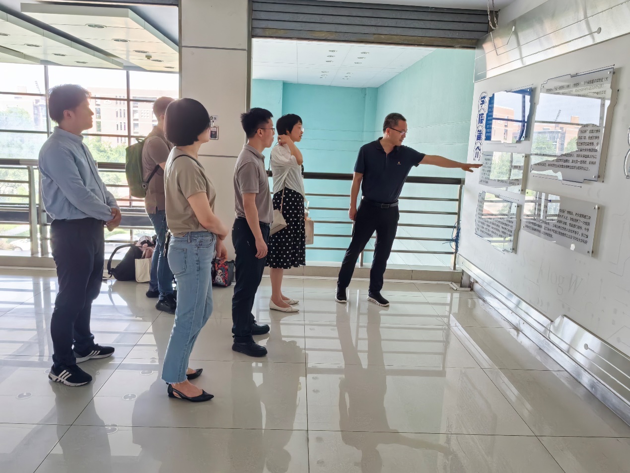 随后,大家来到浙江师范大学物理与电子工程学院。院党委书记周军强带领大家参观了物电学院的文化长廊,并就党建工作召开了座谈会,副院长寇建龙和组织员顾晓咪参加了此次座谈。会上,周军强向大家介绍了物电学院的建设和发展,并就物电学院党委强化政治理论学习、强化支部规范管理、强化党建与业务融合、强化榜样示范引领、强化党建品牌建设等方面进行了详细介绍。随后,网络空间安全学院王伟臻和通信工程学院张爱桦分别就本学院党建工作开展情况进行了介绍。双方围绕党的建设、课程思政、人才培养和学生管理等方面进行了深入交流。