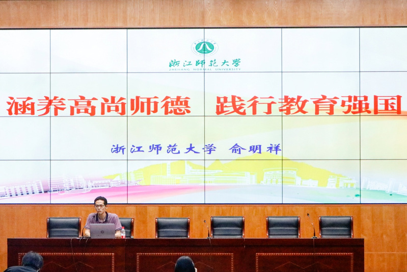 会前,学院与网络空间安全学院联合邀请浙江师范大学教育学院党委书记俞明祥教授做了一场题为《涵养高尚师德践行教育强国》的辅导报告,全体教师一起聆听报告,接受了一场关于师德师风涵养的理论、实践和思想的洗礼。