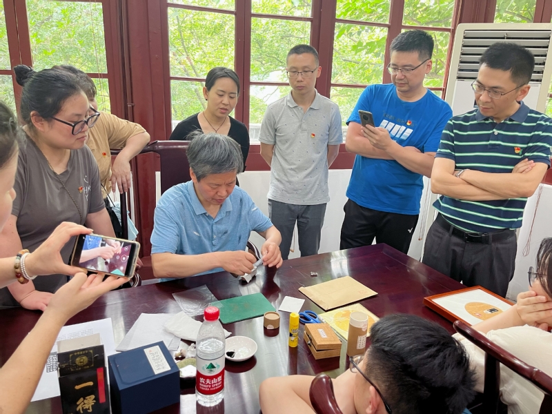 党员们在解说员的带领下,参观了柏堂、前山石坊、鸿雪径、仰贤亭、华严经塔、汉三老石室等景观建筑,深入了解西泠印社建社120年被岁月雕琢的不朽理想、党建引领的百年传奇以及印学艺术的发展历程和艺术魅力。随后走进西泠学堂,体验中国古代最早出现的一种特殊印刷技术——拓印。