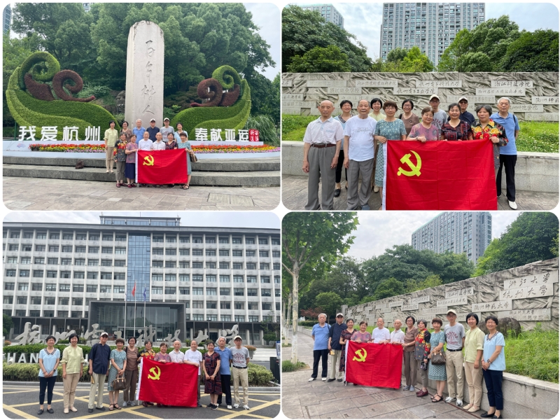 在“百年树人”碑和高校浮雕墙前,王海南与老党员们一起深情回顾了当年杭州最著名文教区的历史文脉。2008年7月8日《浙江工人日报》曾报道过,在杭州文一路与教工路交叉口有一处文化景观,宽大的山体前高高竖起了“百年树人”方石碑,旁边是一堵长24米、高3米的花岗岩浮雕墙,墙上刻着一块块校牌,浙江大学、杭州电子科技大学、杭州外国语学校等近40所曾经或依旧落址在附近的名校名院排列其上。随着城市建设的发展,文教区的院校已大多数搬迁至下沙、滨江等高教新园区。为了传承文教区的历史与特色,故将“百年树人”雕塑群作为历史文化碎片之一予以竖立。王海南说,我和各位退休老师一样,对往日校园时光有很深的感情,美好往事都历历在目,记忆犹新。在学校60多年的发展历程中,文一校区从无到有,从繁盛到搬迁到与西湖区合作共建数字经济创新科技园,这些变迁见证了一代又一代杭电人诲人不倦,立德树人,为梦想而拼搏的努力,为成长而付出的汗水,也因此而成为无数杭电人心中永恒的记忆。学校从2018年开始《我与杭电的故事》采编工作,尽力做好学校精神文化传承与历史记录。以小窥大,相信我们中华儿女都是怀有一颗赤子之心,爱校爱国爱党爱人民。