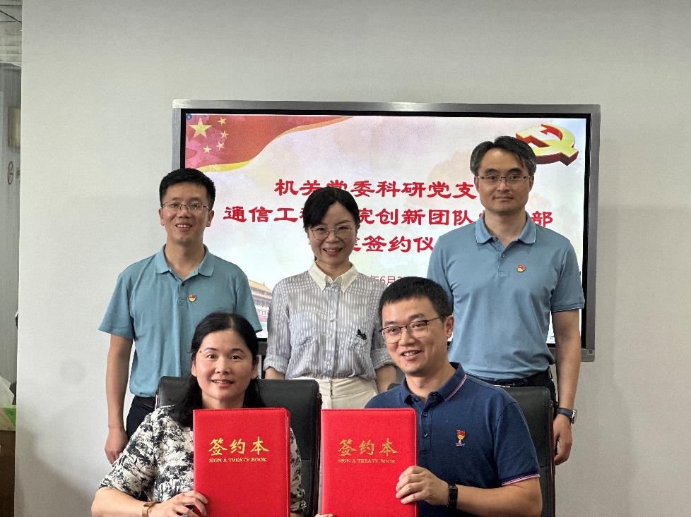 为推进学习贯彻习近平新时代中国特色社会主义思想主题教育走向深入,切实贯彻落实习近平总书记关于科技自立自强的重要指示精神,构建“互带互助、优势互补、共同发展”的党建合作新格局,6月27日,机关科研党支部与通信工程学院创新团队党支部举行了共建签约仪式,机关党委书记袁秀川、机关党委四总支书记邬惠峰、通信工程学院党委书记何宏、共建支部委员及党员代表参加了签约活动。