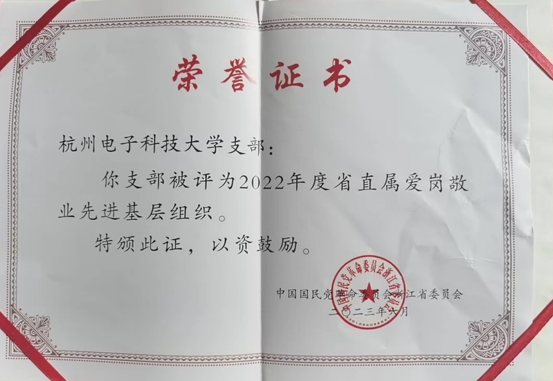 民革杭州电子科技大学支部在2022年度民革省直基层组织“双争评比”中获奖