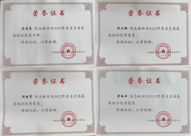 会议表彰了2022年度民革省直属基层组织“双争评比”先进集体和先进个人,民革杭州电子科技大学支部获2022年度省直属爱岗敬业先进基层组织,支部委员吴迎来获省直属基层组织优秀干部荣誉称号,支部党员黄海云、周继军、施永强获2022年度省直属基层组织优秀党员荣誉称号,章和瑛代表支部上台领奖。