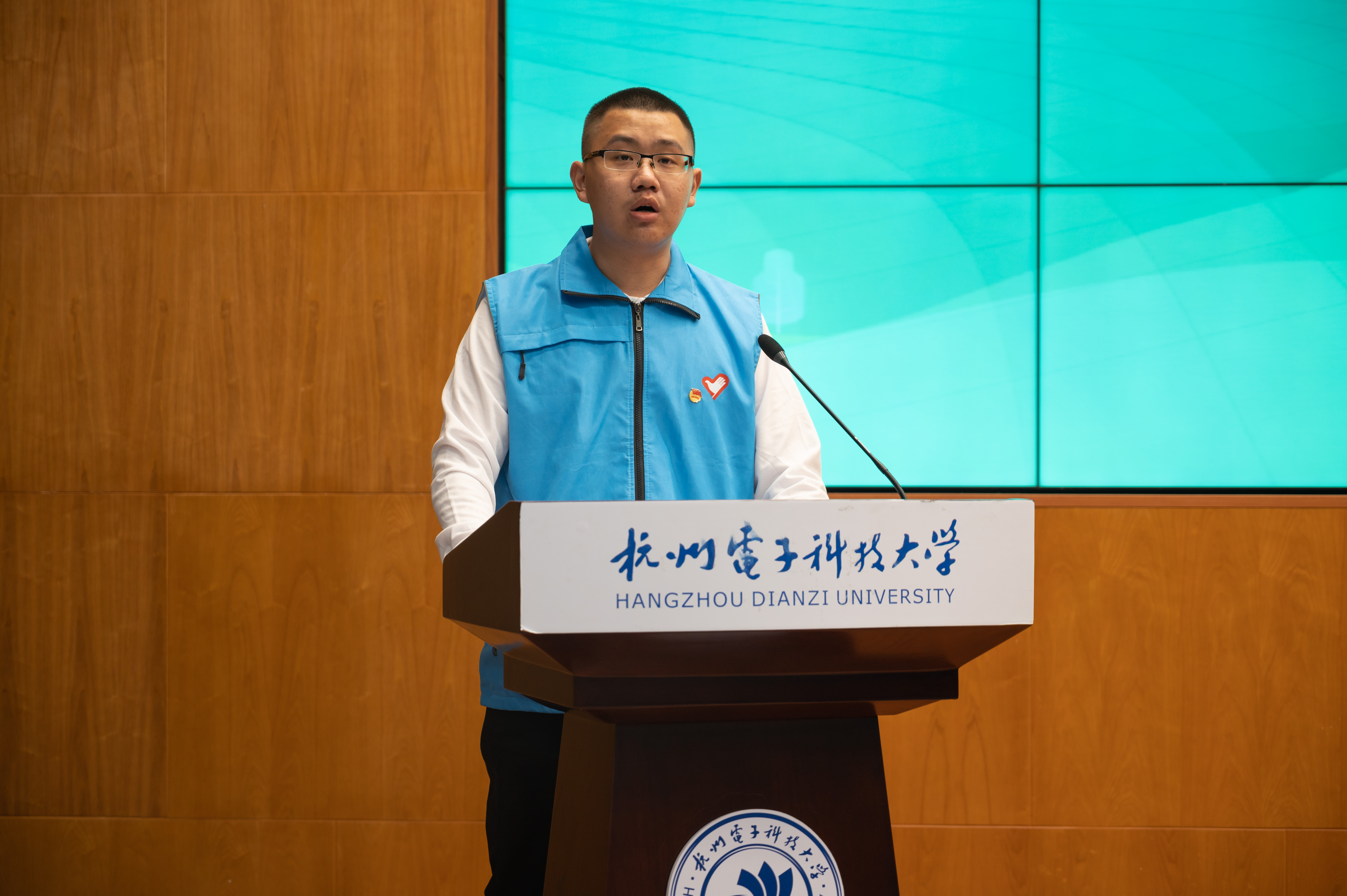 自动化学院测控技术与仪器专业2021级学生钟春雁、机械工程学院2019级机械设计制造及其自动化专业黎伟分别作为暑期社会实践学生代表和志愿服务西部计划志愿者代表分享了各自在社会实践和志愿服务中的感悟体会,讲出了“唱响我在窗口写青春最强音,奋力谱写无愧伟大时代青春华章”的誓言。