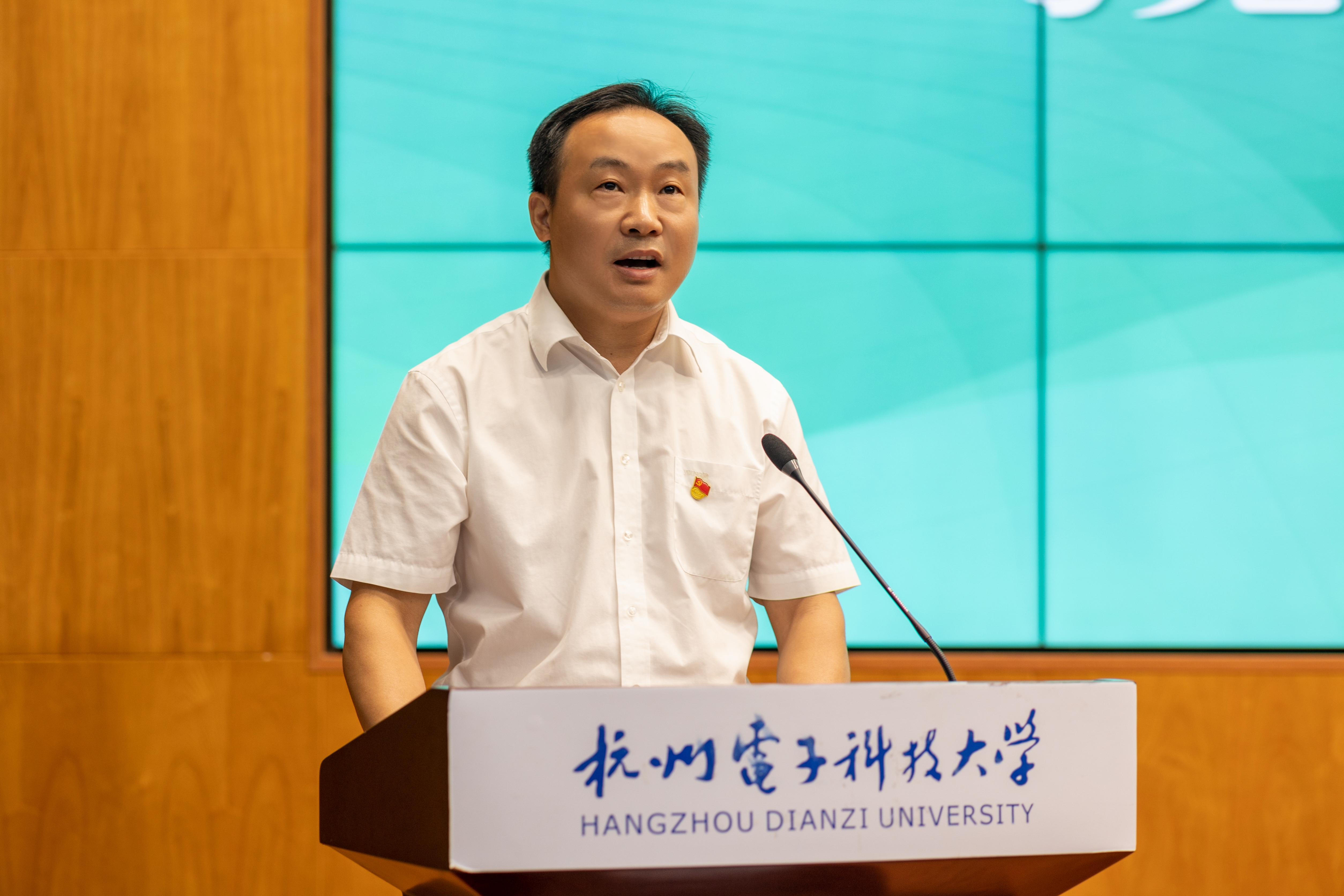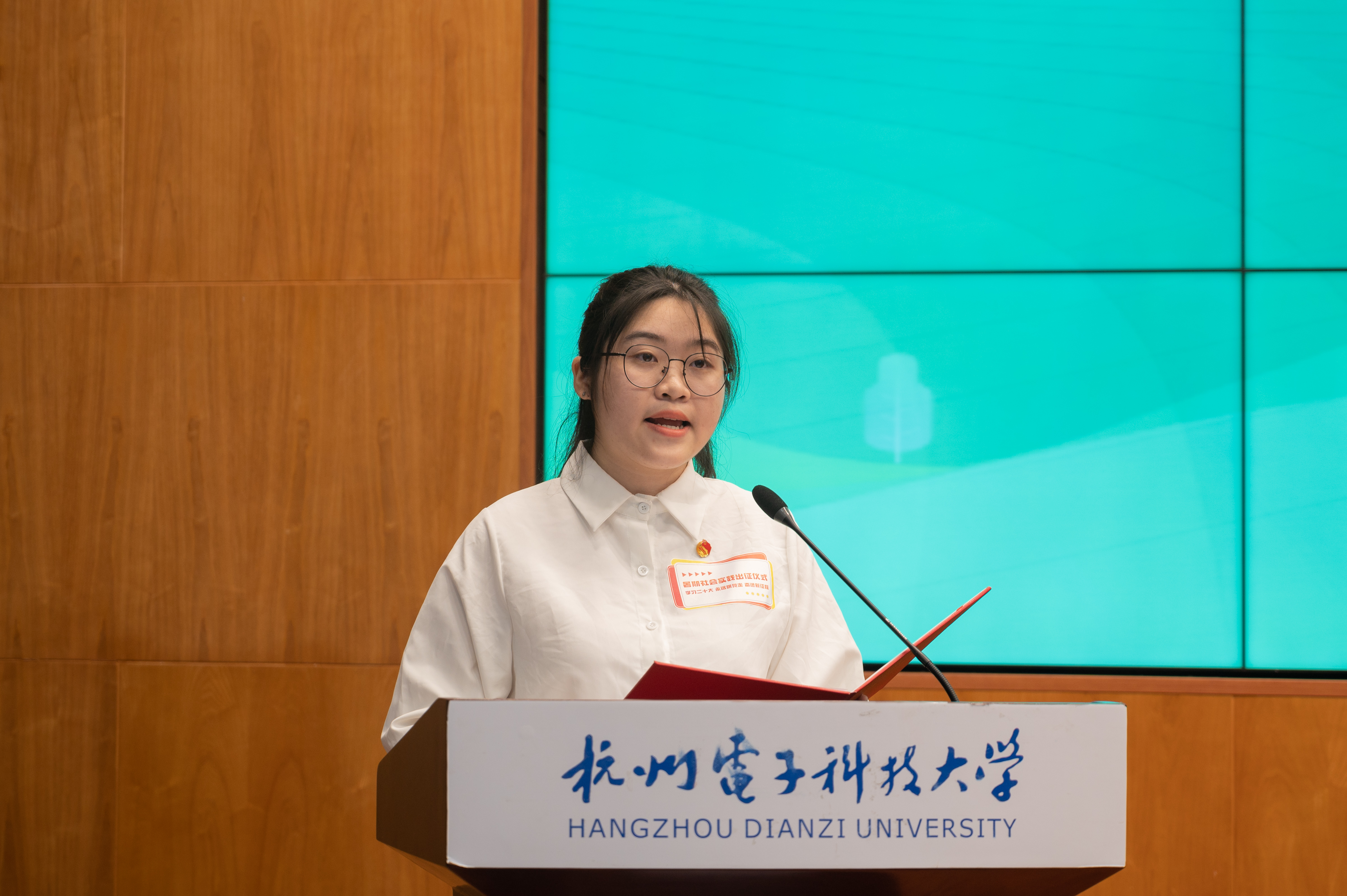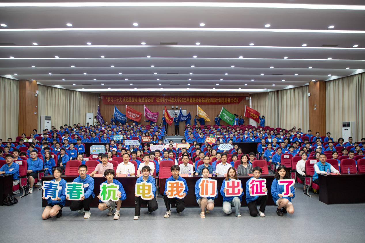 戚明钧作动员讲话。他指出,今年是“八八战略”实施20周年,“浦江经验”“千万工程”20周年,又恰逢第19届亚运会、第4届亚残运会在杭州举行。在这样的时代背景下,认真组织并落实好今年的暑期社会实践活动、西部计划志愿服务意义深远。戚明钧勉励大家要学思践悟,在深入实践中感应时代脉搏,书写属于杭电青年独有的光辉篇章;要实干笃行,在服务社会中淬炼“硬核”担当,切实践行“请党放心,强国有我”的青春誓言;要知行合一,在锻造本领中彰显青春价值,唱响“我在窗口写青春”最强音。