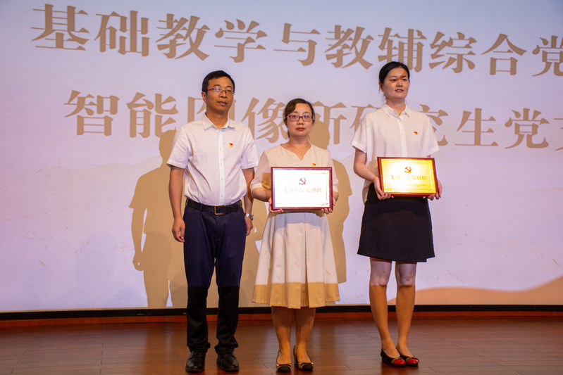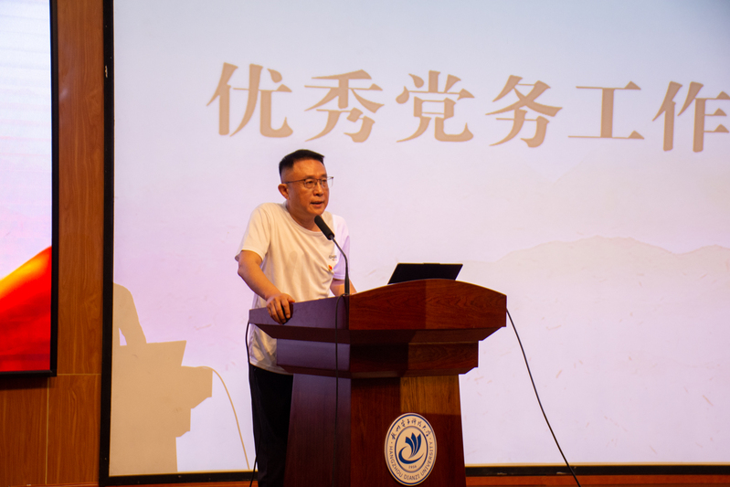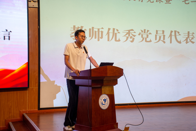 随后,教师优秀党员代表陈德潮、学生优秀党员代表欧阳瑜、优秀党务工作者代表吕长平依次进行了发言。教师优秀党员代表陈德潮表达了党员教师在培养人才中使命感和责任心的重要性,他强调教师党员要以身作则,引导学生树立正确的世界观、人生观和价值观; 学生优秀党员代表欧阳瑜分享了自己在学习和实践中的成长与收获,她以党员身份为奋发向上的动力源泉,为社会主义事业贡献自己的力量;优秀党务工作者代表吕长平以丰富的党务工作经验,强调了党务工作者的责任和使命,他希望党务工作者能够不断创新工作方式,提高工作效率,为党的事业贡献更多力量。