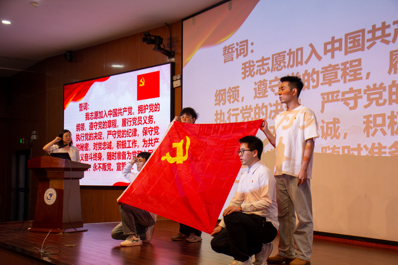 最后,孔万增带领新发展党员们进行入党宣誓,全体老党员重温入党誓词。面向党旗,铿锵有力、饱含热忱的誓词响彻现场,震撼着在场每一位党员的心灵。党员们将继续坚守初心,勇担使命,以更加昂扬的姿态,在各自的岗位上为实现党的事业不懈奋斗,为国家的繁荣和人民的幸福贡献自己的智慧和力量,不断努力,为学院的发展做出新的贡献,为党的事业不断谱写新的篇章!