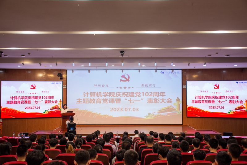 为庆祝中国共产党成立102周年,深入学习贯彻习近平新时代中国特色社会主义思想主题教育,计算机学院于7月3日下午在4教127报告厅召开庆祝建党102周年主题教育党课暨“七一”表彰大会。学院党委书记孔万增、副院长徐岗、学工办主任魏萍以及受表彰师生党员、新入党师生党员和各支部党员代表参加会议,会议由学院党委副书记张桦主持。