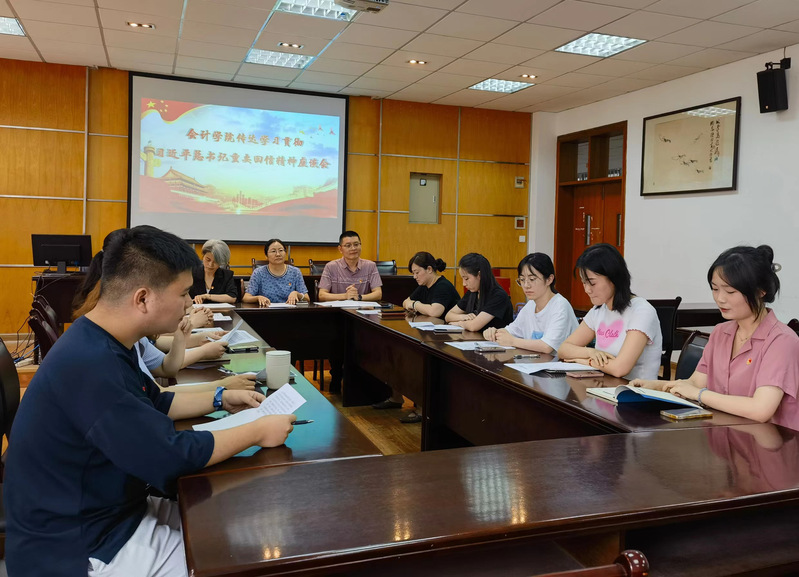 7月7日上午,会计学院召开师生座谈会,学习贯彻习近平总书记7月4日给南京审计大学审计专业硕士国际班留学生的重要回信精神。会计学院领导班子成员、党支部书记以及师生代表参加座谈。