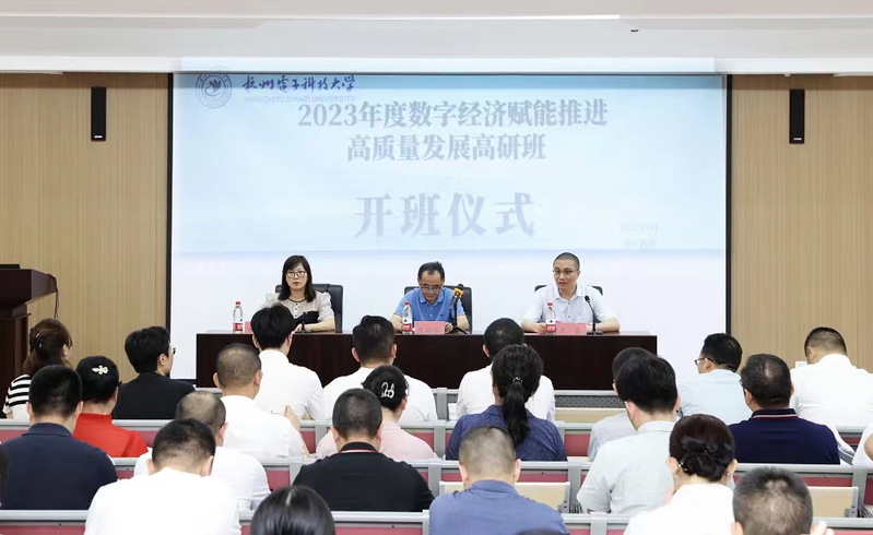 7月7日上午,由人力资源和社会保障部主办、浙江省人力资源和社会保障厅与我校继续教育学院共同承办的国家专业技术人员知识更新工程2023年高级研修项目“数字经济赋能推进高质量发展高级研修班”在东岳校区顺利开班。浙江省人社厅专技处二级调研员张建林,杭州电子科技大学继续教育学院院长王雷,及来自全国各省市企事业单位、相关行业协会的中高级专业技术人员和管理人员共70余人出席了开班仪式,开班仪式由杭州电子科技大学继续教育学院培训部主任郑明娜主持。