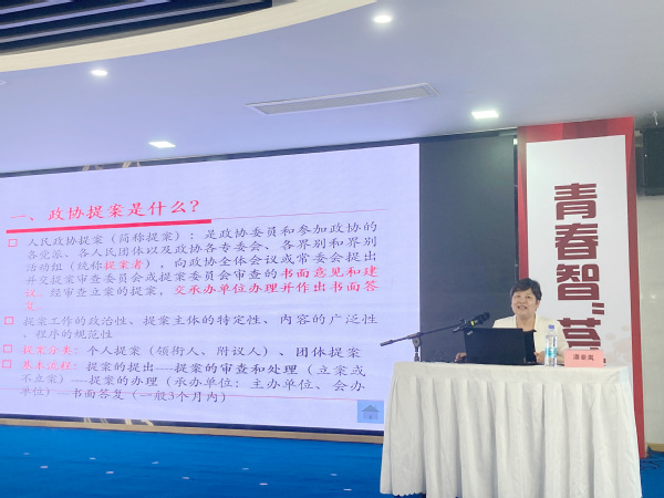 在培训环节,潘亚岚教授围绕政协提案是什么、如何写提案对参赛学生进行专题培训。潘亚岚建议参赛学生坚持问题导向,聚焦人民群众普遍关心的民生问题,在深入调查研究基础上撰写高质量提案,并表示模拟政协提案比赛能够有效提升青年学生的责任意识与解决问题的思维能力,培养大学生参政议政意识,有助于推动高校学生思想政治教育、实现全面发展。
