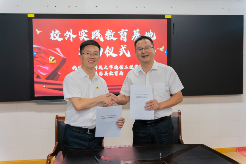 会后,杭电通信工程学院与遂昌县教育局以及大柘镇中心小学签署《校外实践教育基地共建协议书》。此次签约坚持“优势互补、互惠共赢、共同发展”的原则,以期实现双方共建共享共赢,开启杭电通信学院与遂昌地区合作的“新篇章”,成为助力遂昌发展的“新引擎”。