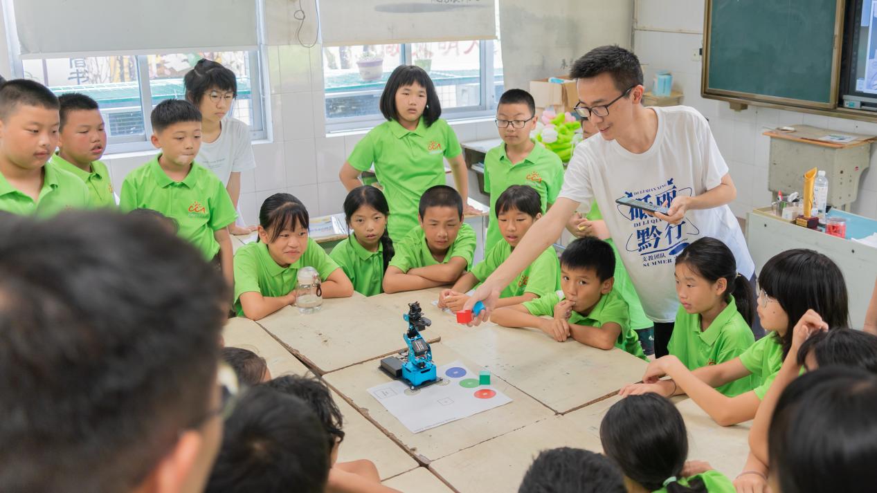 (“砥丽黔行”社会实践团队为遂昌县大柘镇的小学生开展机械臂,智能车,航模,VR等课程)