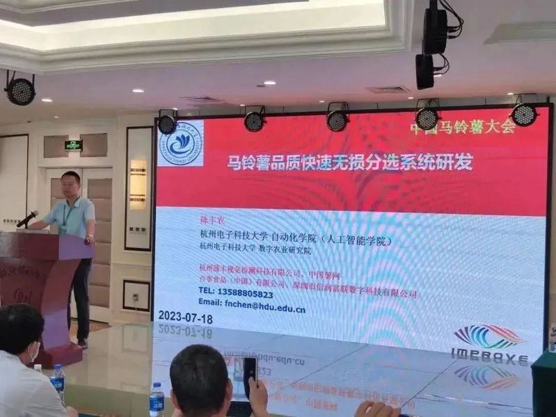 7月15至18日,第24届中国马铃薯大会在黑龙江齐齐哈尔召开,我校自动化学院陈丰农老师带队参加并做了主题报告——关于人工智能技术用于马铃薯品质快速无损分选,把我校火热的专业与农业做了紧密的结合。
