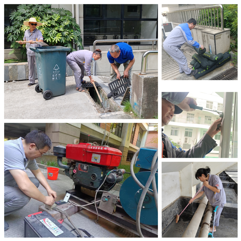 防台工作事关全校师生安全,后勤服务中心高度重视,本着“早发现、早预警、早处理” 原则,增强防台工作的紧迫感和责任感,中心全体员工严阵以待、坚守岗位、履职尽责,切实做好隐患排查,守好后勤安全防线,确保后勤服务平稳有序。