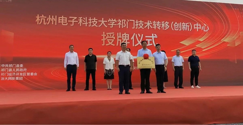 活动现场举行了杭州电子科技大学祁门技术转移(创新)中心授牌仪式,我校与祁门县共建技术转移分中心,加强校地在科技、人才、项目等方面的主动协作,提升合作层次与水平,打造互利共赢的政产学研合作平台。