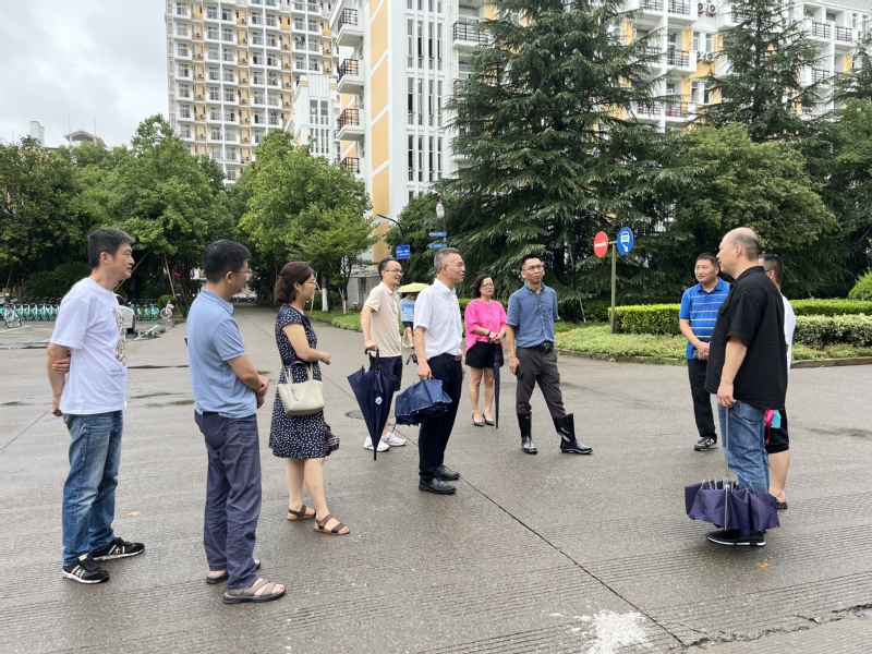 为做好学校防御今年第5号台风“杜苏芮”的各项工作,排查风险隐患,7月28日下午,校党委书记王兴杰带队实地检查下沙校区抗台防汛工作,学校办公室、公共事务管理处、保卫处、后勤服务中心负责人等陪同检查。