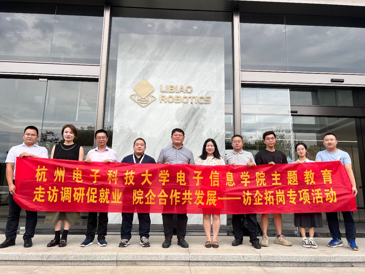 为进一步推动学习贯彻习近平新时代中国特色社会主义思想主题教育走深走实,积极响应教育部“访企拓岗”促就业专项行动,深化院企合作,培养应用型高素质人才,解决高校毕业生就业难题,电子信息学院积极探索协同育人促进就业新途径、新方法。7月25日,电子信息学院党委书记陈龙、副书记章宗森、专任教师刘公致等一行6人,前往浙江立镖机器人开展访企拓岗专项活动。