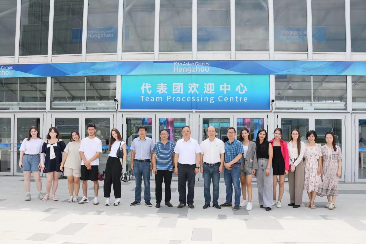 8月2日,由我校9位留学生组成的国际播报团应邀探访亚运村,参与拍摄了亚运村介绍节目。杭州电子科技大学副校长兼杭电场馆常务副指挥长杨勇、公共事务管理处处长兼杭电亚运物流餐饮主任林浩、杭电亚运场馆设施维护主任潘申洲、国际教育学院院长兼杭电亚运语言主管王一安、校宣传部副部长程振伟、都市快报外宣厨房主任周霁、季韬参加了活动。