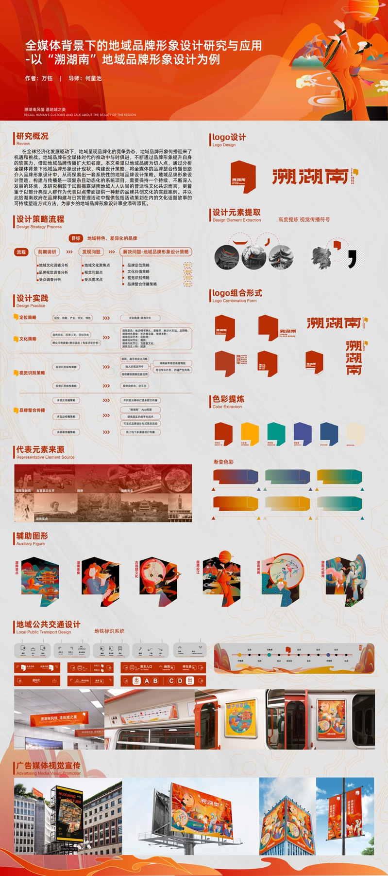 设计说明:在全媒体背景下,媒介传播途径发生巨大改变,信息传播方式变得多元。“溯湖南”地域品牌形象设计借助全媒体,将传统的地域品牌形象设计方法与全媒体的新技术与新体验方式充分融合,构建了地域品牌形象设计的新思路。针对典型目标人群展开代表性的特点研究,以点带面提供一种新的地域品牌共创文化的可持续实践案例。