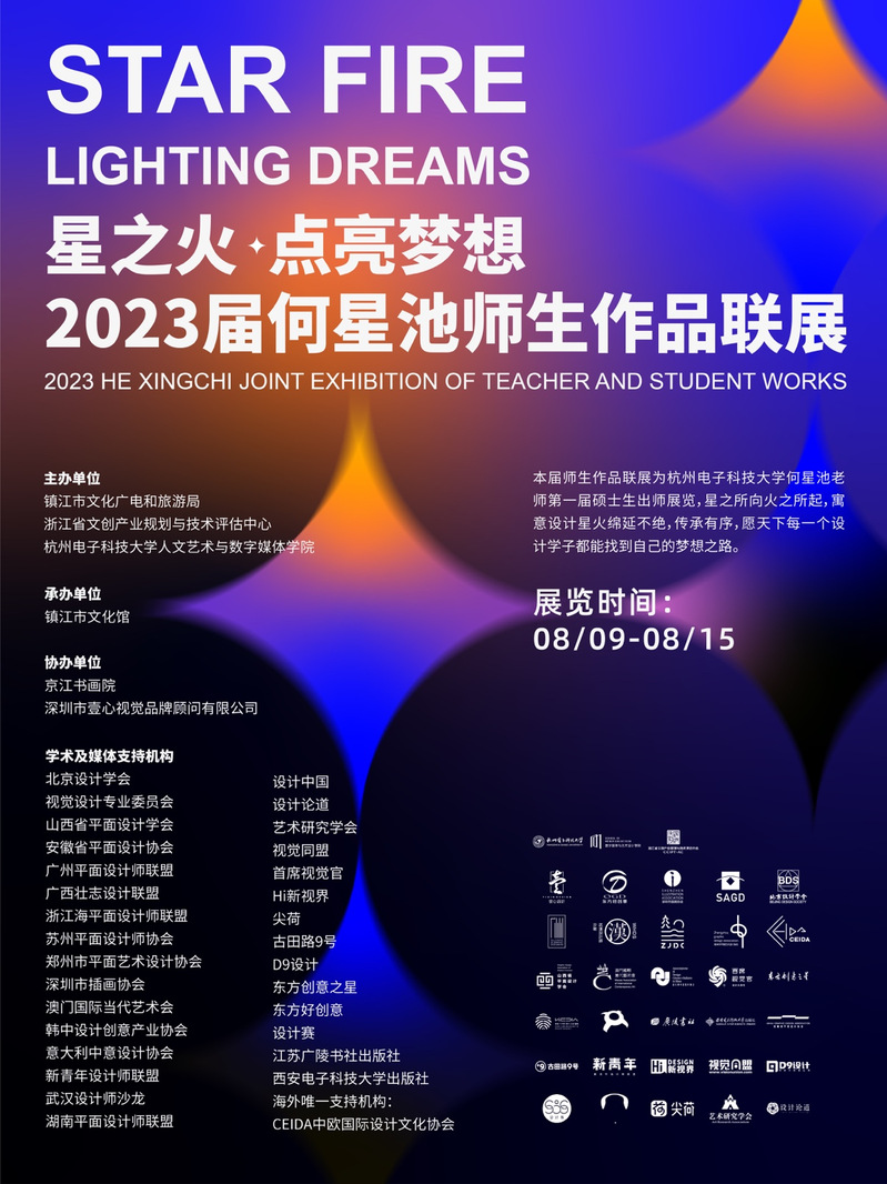 8月9日,由镇江市文化广电和旅游局、浙江省文创产业规划与技术评估中心以及杭州电子科技大学人文艺术与数字媒体学院联合主办,镇江市文化馆承办的“星之火·点亮梦想——2023届何星池师生作品联展”开幕式在江苏省镇江市文化馆隆重举行。