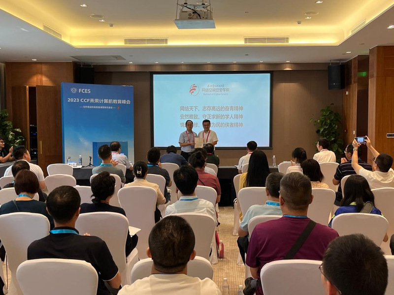 2023未来计算机教育峰会(FCES2023)于8月4至5日在合肥隆重举办。国内外名校学者、名企领军人物、计算机教育领域极具影响力的业内专家围绕“与时俱进的高质量课程体系建设”主题,在13场分论坛上分享探讨计算机教育在智能时代面临的问题和挑战,我校网络空间安全学院任一支副院长应邀参加“地方特色高水平大学计算机教育”分论坛,并围绕“红客卫士:网络安全实战化育人模式的探索与实践“主题进行报告分享。