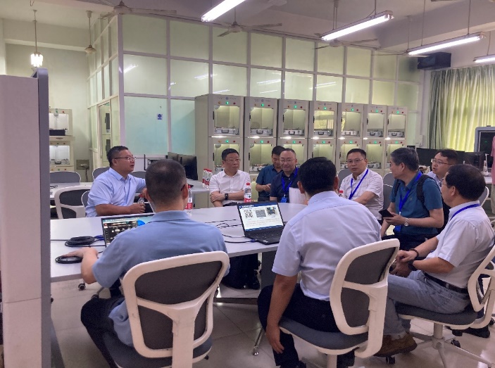 考察会上,学校电工电子、计算机和智能制造技术国家级实验教学中心负责人对照教育部《国家级实验教学示范中心阶段性总结项目观测表》,分别从管理运行机制、教学与人才培养、教学改革与研究、教学条件保障、教学团队建设、示范引领成效、特色亮点与创新等方面对示范中心五年来工作进行总结汇报。