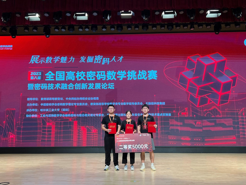 8月14日至15日,由教育部高等教育司、中央网信办网络安全协调局共同指导,中国密码学会、教育部高等学校数学类专业教学指导委员会、天融信科技集团联合主办,哈尔滨工业大学(深圳)承办的第八届(2023年)全国高校密码数学挑战赛总决赛在深圳举行。该赛事是一项覆盖数学、密码、计算机、网络安全等多个专业的跨学科标杆性竞赛,是精准发现和培养有特殊才能的综合型人才的良好平台。