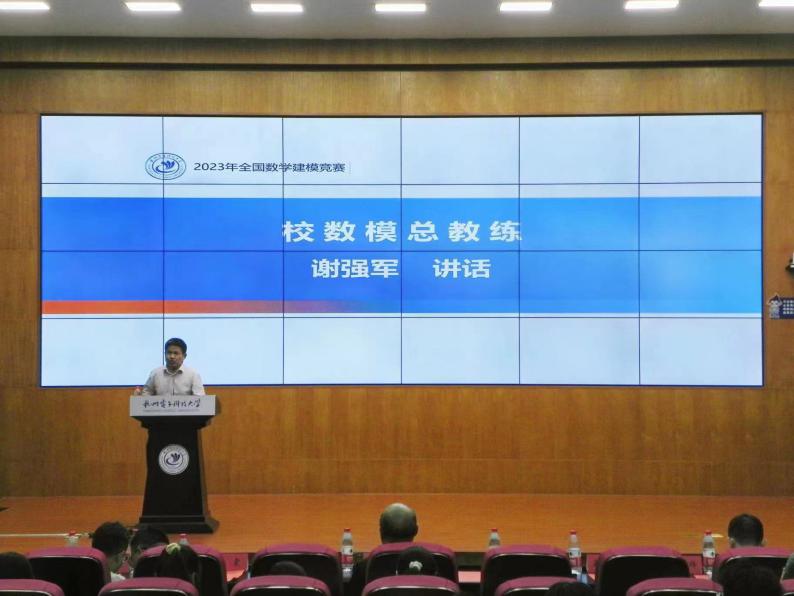 校数模总教练谢强军表达了对即刻到来的数模竞赛的期待,并希望参赛选手们放松心态,无惧压力,全力以赴。