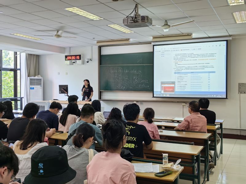 9月8日上午在12教312,图书馆张信子在图书馆入馆教育中,向新生详细介绍了图书馆楼层、馆藏分布、查书找书、座位预约、读者活动等,旨在帮助新生们更好地利用图书馆资源,提升学术素养。蹇瑞卿则从研究生的科研需求角度,专门介绍了如何在校外使用图书馆资源、如何在知网等学术网站上高效查找电子文献、如何熟练运用电子资源等方面内容,希望为同学们未来的学术研究提供强有力的帮助。