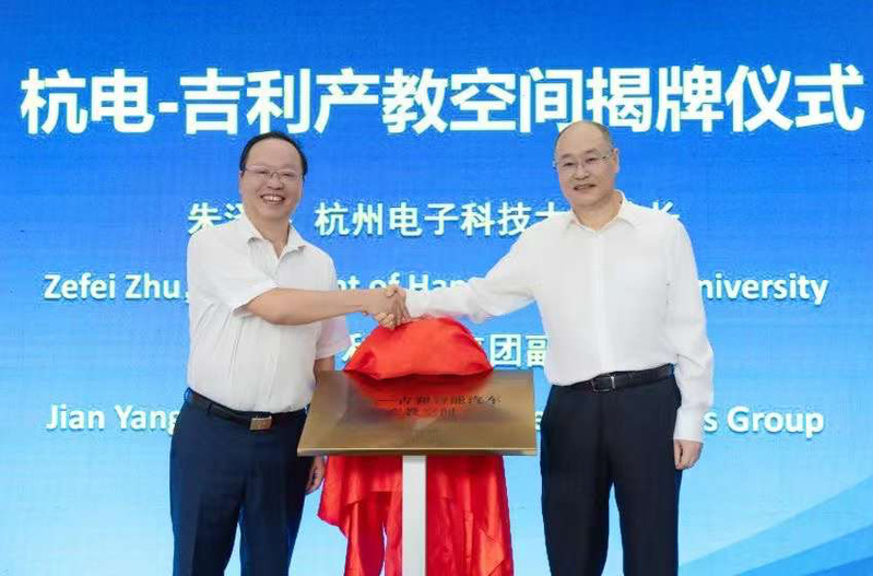 随后,马国进和潘雷方分别代表“校、企”共同签署了备忘录。朱泽飞和杨健共同为杭电—吉利智能汽车产教空间揭牌。