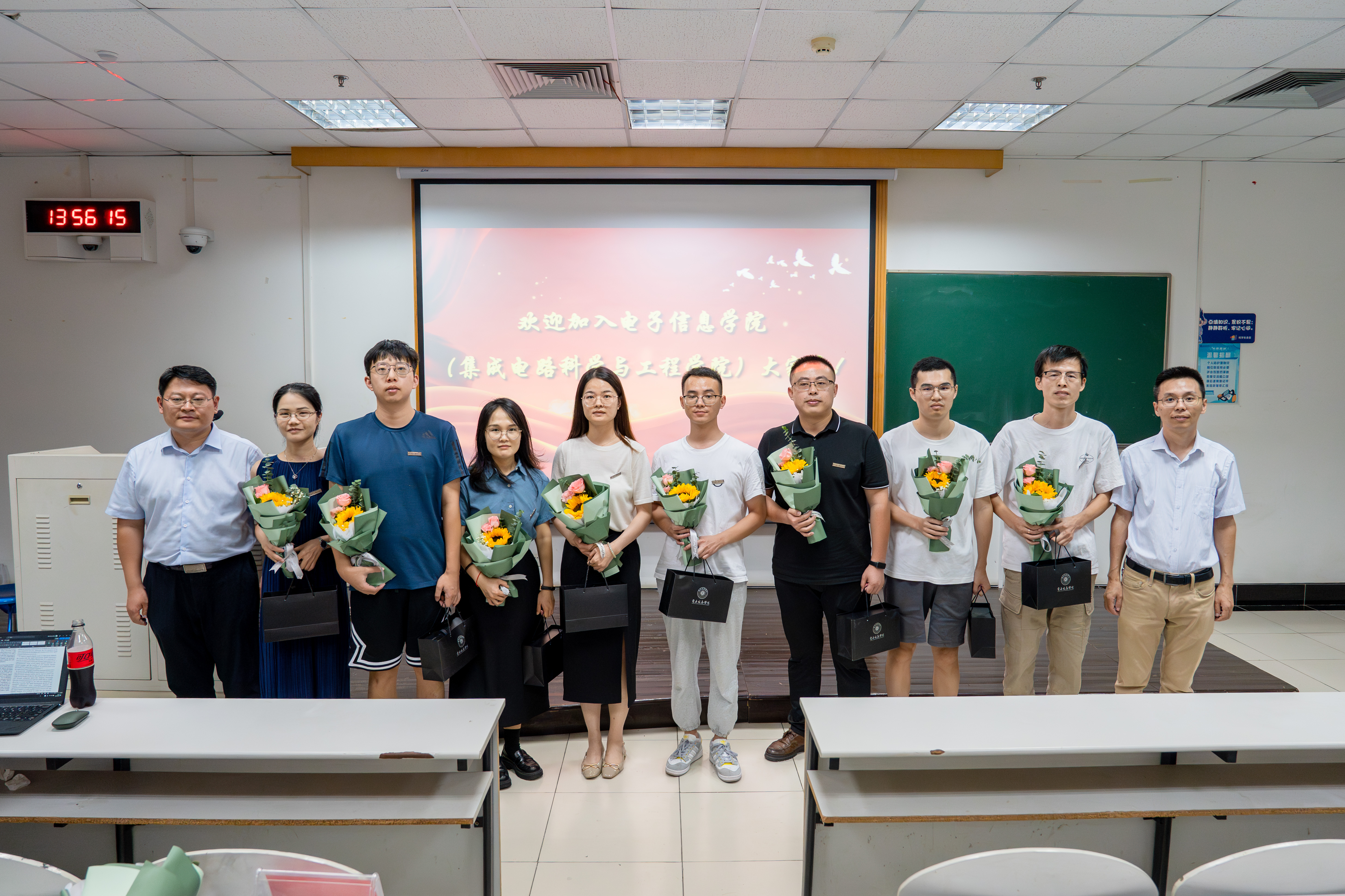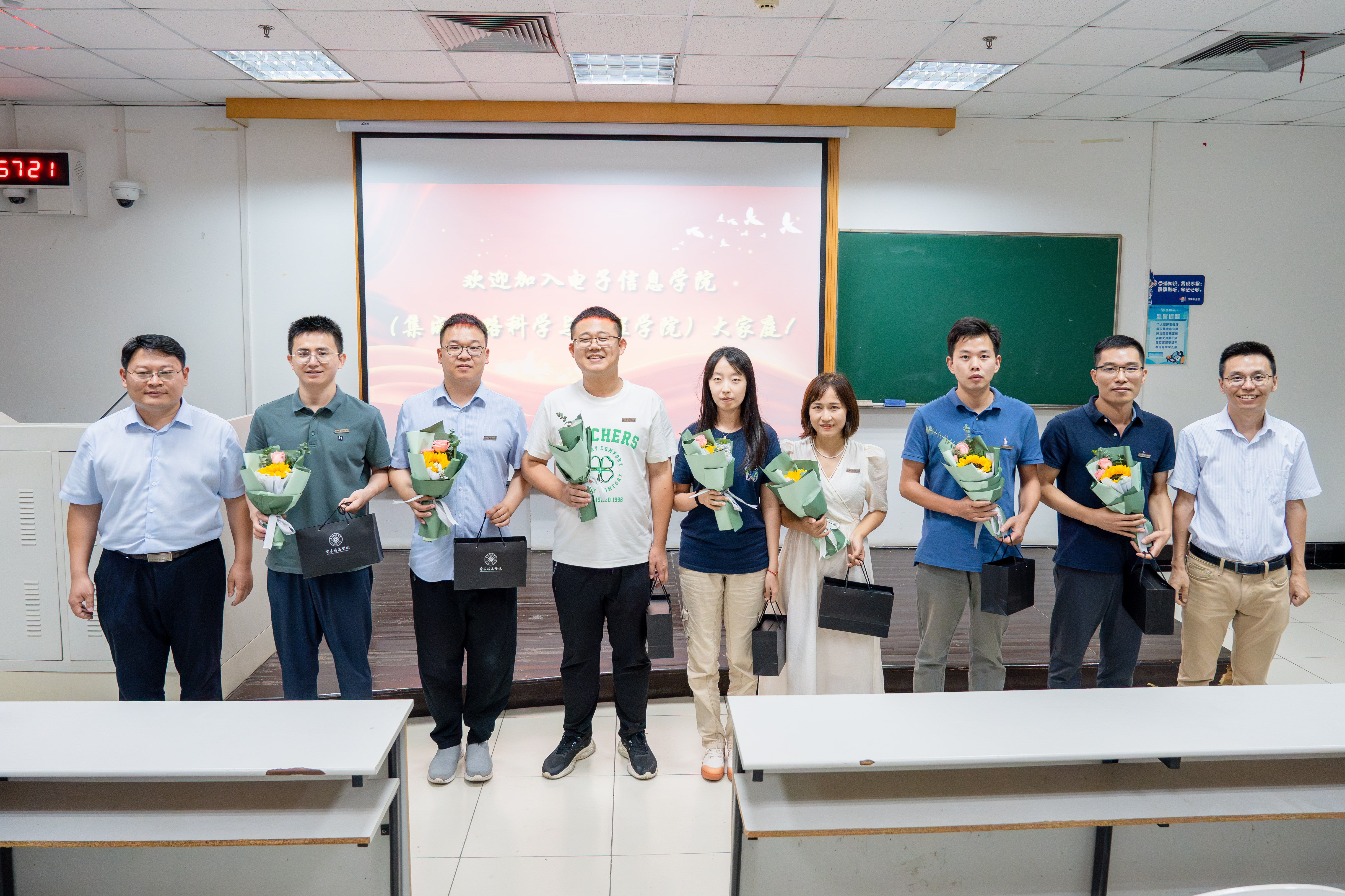 会上,学院为32名新教师举行了特别的入职欢迎仪式,旨在帮助大家尽快熟悉工作环境,融入学院氛围,以饱满的状态投入工作。仪式由陈龙主持,何志伟为新入职教师佩戴校徽、赠送鲜花,并送给每位新教师一份学院特别定制的欢迎礼物,鼓励他们教书育人,做好科研,为学校和学院的发展贡献力量。