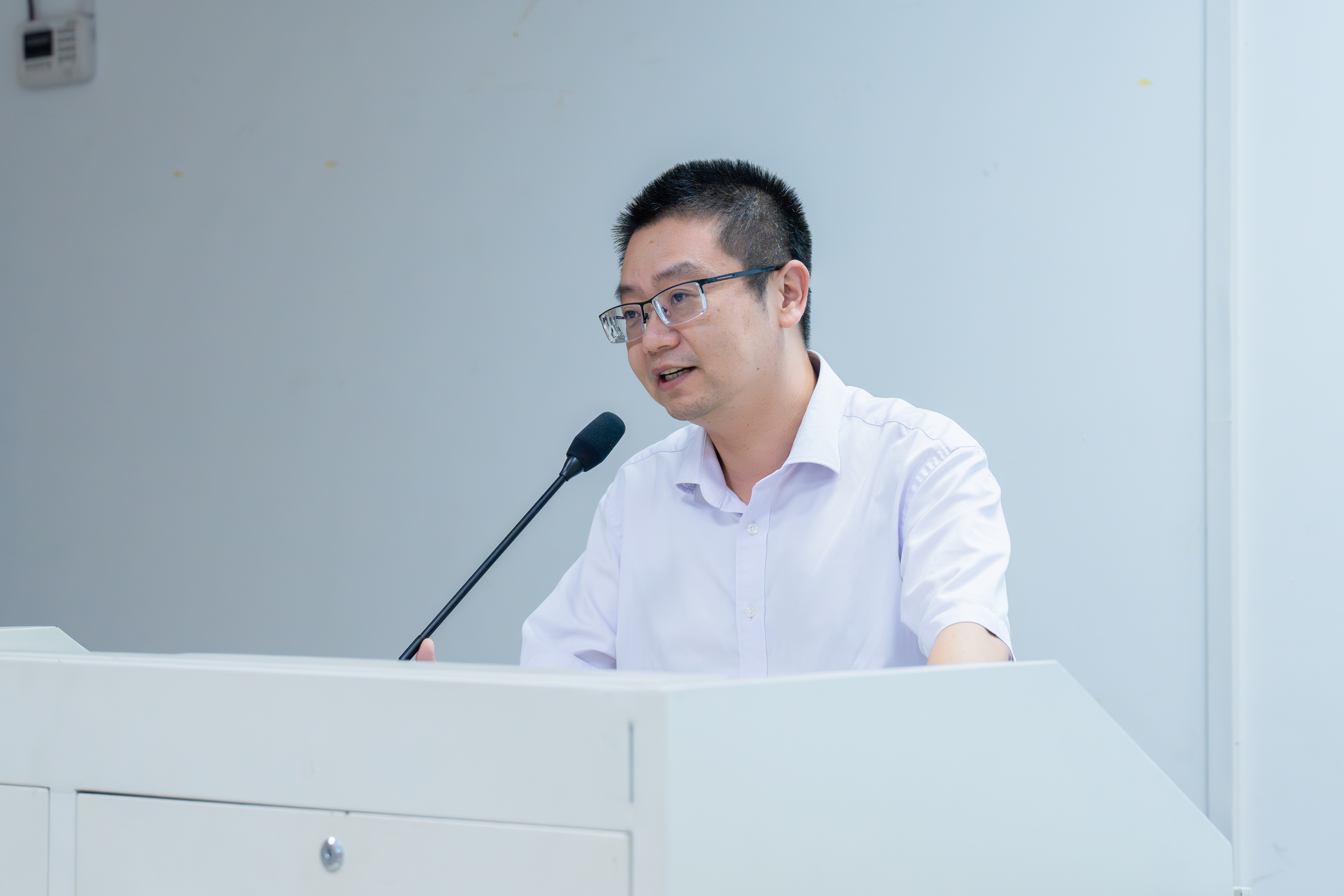 院党委副书记章宗森就学院学生工作情况做了介绍,他从学工新队伍介绍、聘期内重点工作开展情况、本学期重点工作情况三个方面展开,对2023届毕业生工作和近期学生工作要点向全院教职工做了通报和安排。
