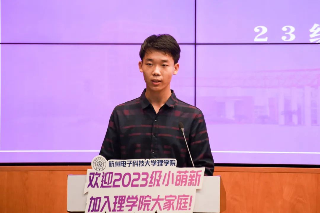 研究生新生代表王凯同学表达了对母校杭州电子科技大学的感恩,总结了本科四年的学习经验和成果,决心在读研期间以饱满的学习热情进一步探索和拓展自己的知识深度和广度,为自己和学校铸就辉煌。本科生新生代表吕祎晗同学介绍了自己的成长经历和选择杭电的原因,表达了对于数理学科的看法和态度,强调了数理学科的基础和支持对于前沿科技发展的重要性。吕祎晗呼吁全体新生要秉承杭电的优良传统和校训精神,努力提升自身的专业知识,培养爱国爱党的思想,不畏艰辛,永不言弃,勇敢追求梦想。
